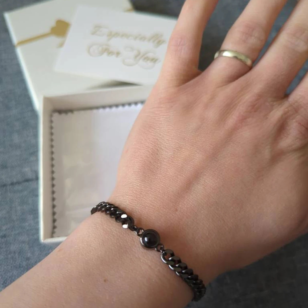 "Pedí una pulsera con la foto de mi hijo y fue lo mejor que pude hacer. El producto es precioso, resistente y refleja exactamente lo que buscaba. Me da paz llevarlo conmigo."
